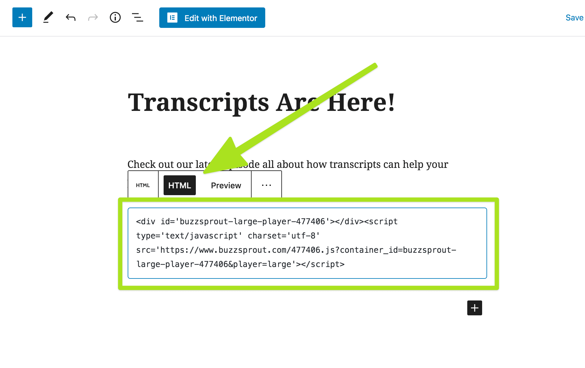 Players page in your Buzzsprout account and copy the embed code for the player you would like to embed.