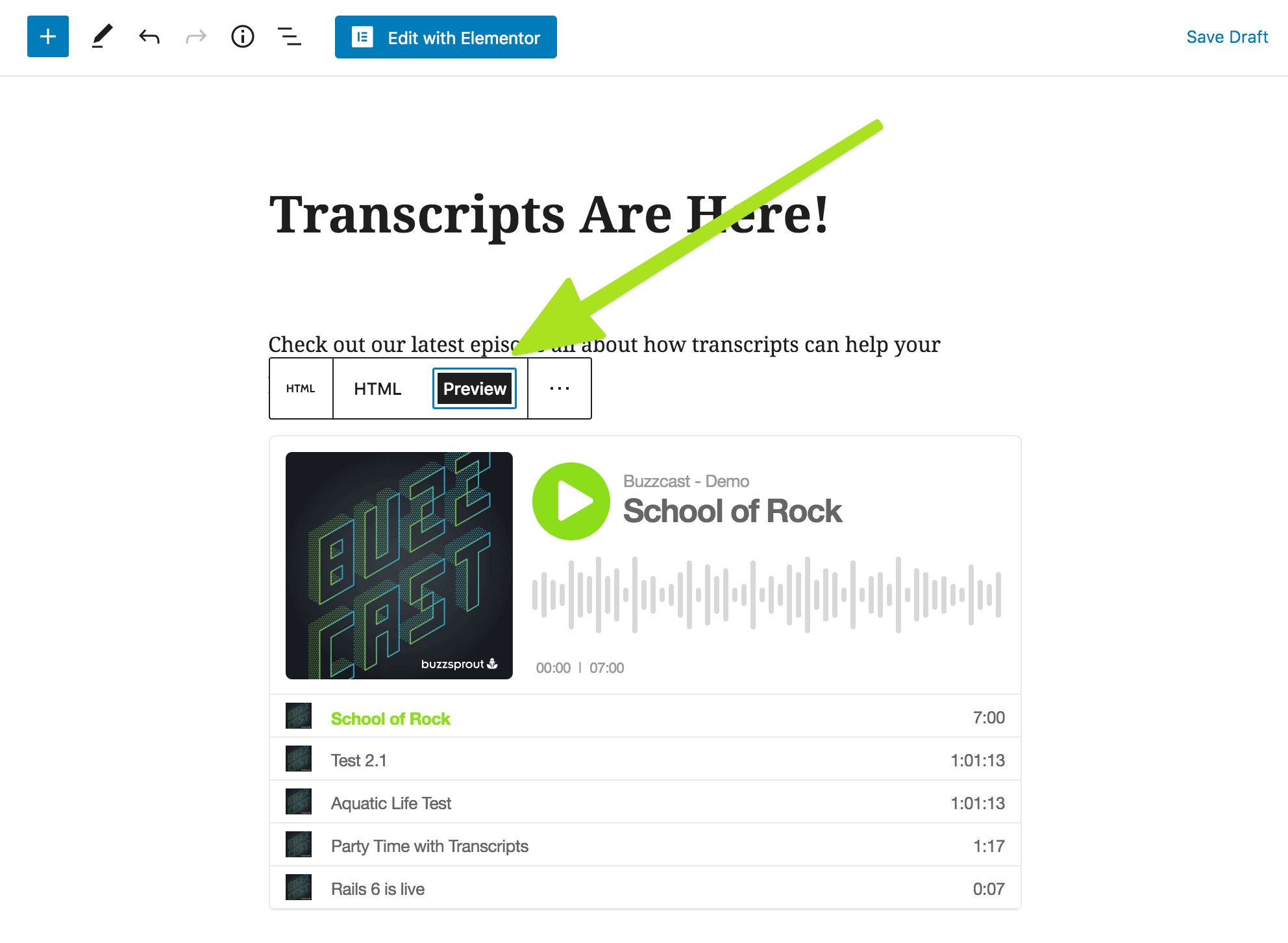 Preview button on the block and you will see the player show! Now save your changes and the player will show on your website!