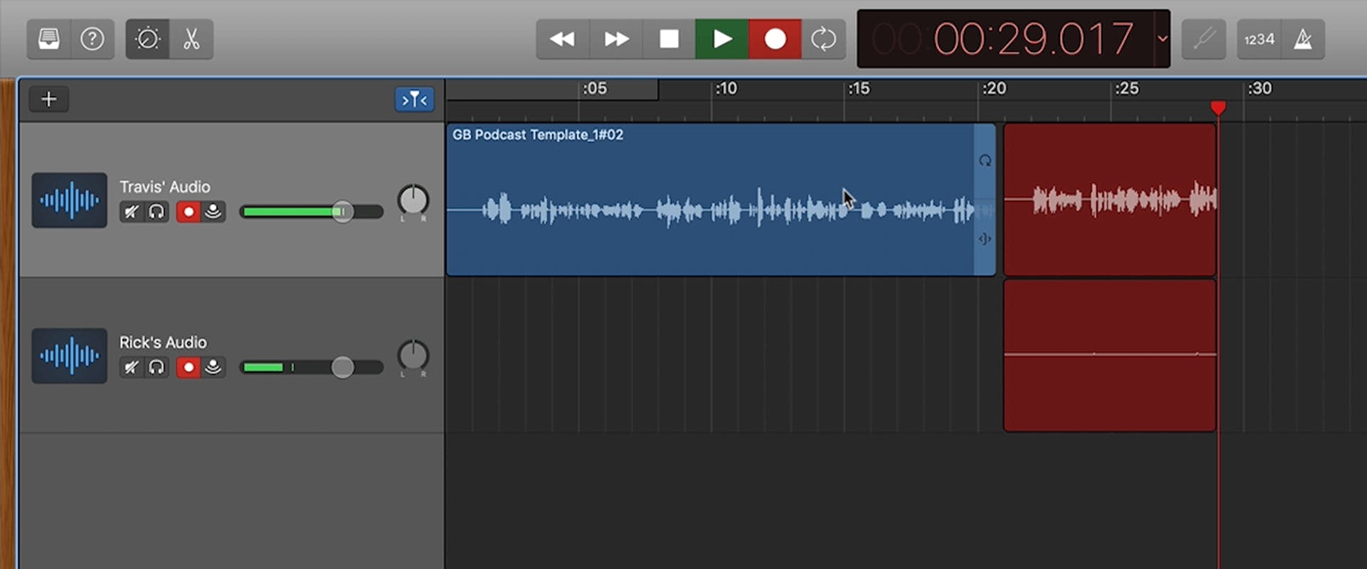 GarageBand is an excellent beginner tool for editing a podcast. However, because it was created for music production and songwriting, you might need to turn off some of the features to make it work for podcasting.