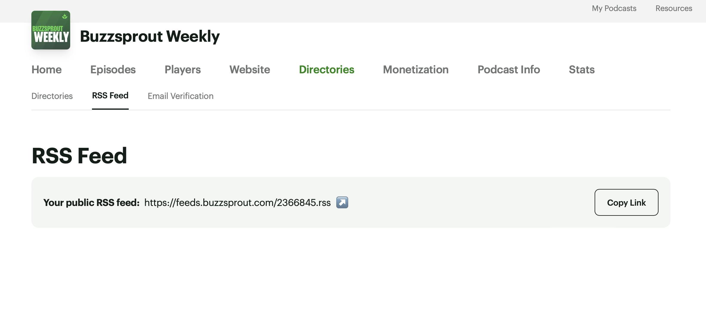Copy the RSS feed URL so we can submit your podcast to Apple.